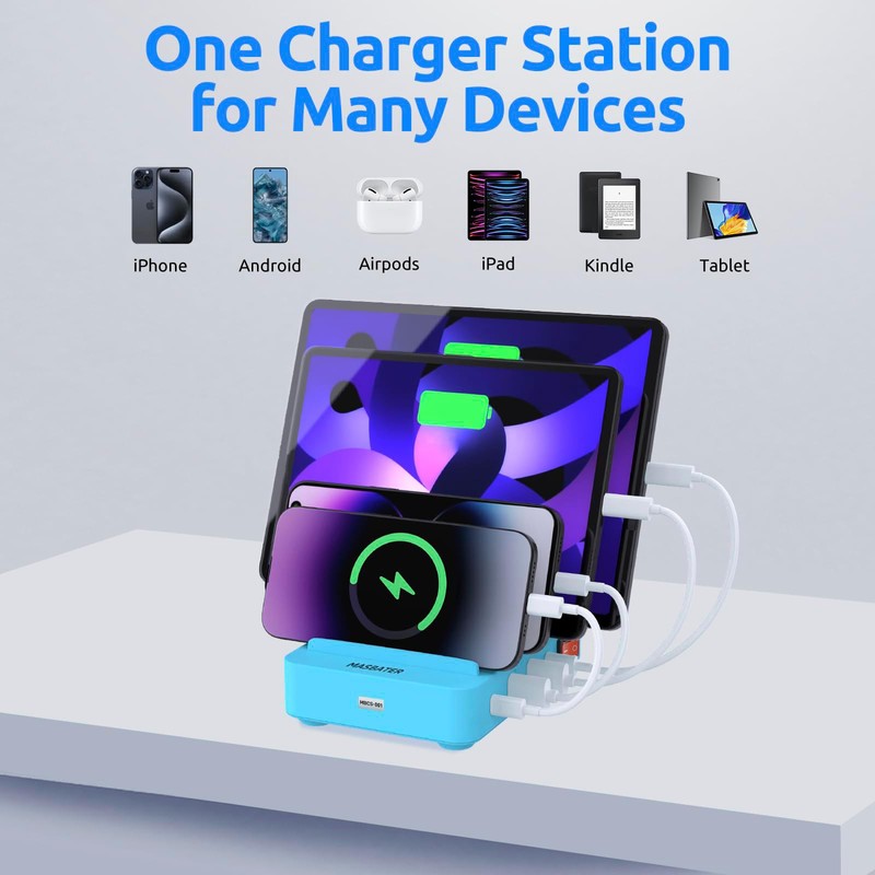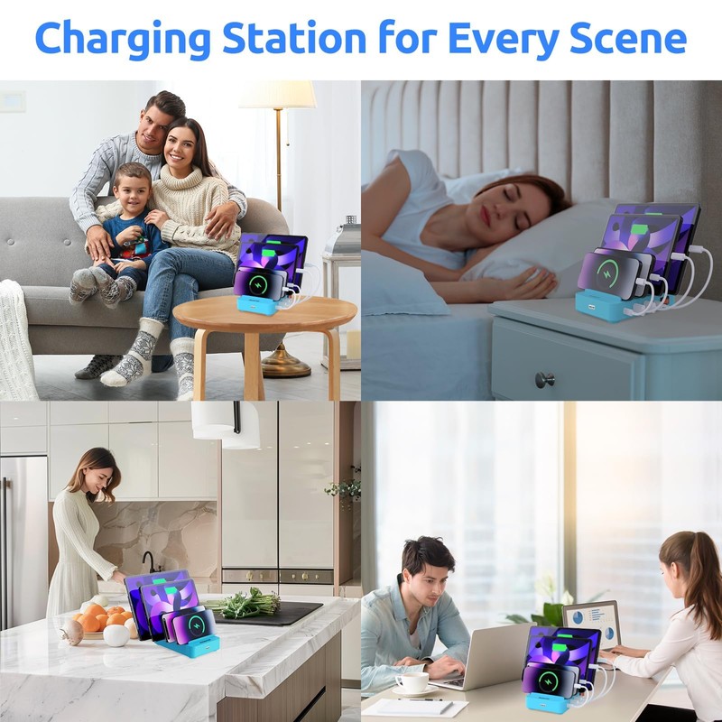 - Charge 4 Devices Simultaneously: Keep your space organized with this 40W charging station; Compatible with Apple, Android, iPhones, iPads, tablets, and more; Ideal for home, office, and travel use; Say goodbye to clutter and hello to efficiency