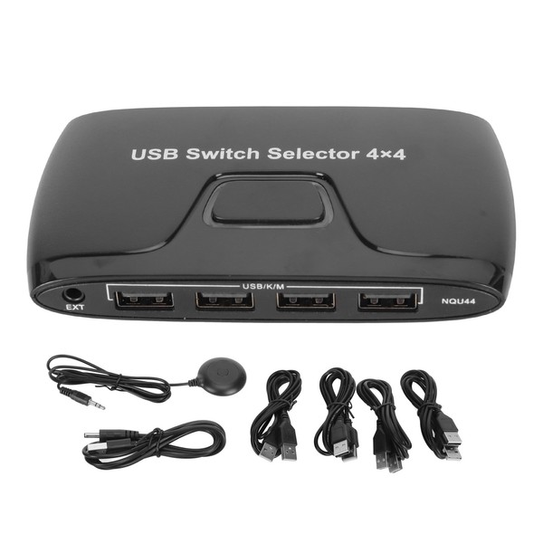 1、4 IN 4 OUT: 4 port USB switch selector allows one button switching between 4 computers to share 4 USB peripherals without the need to constantly pull cables or set up complex network sharing software. It is perfect for sharing printers or scanners in small office environments. 2、MULTI DEVICE SHARING: USB KVM switch allows you to share multiple devices such as printers, scanners, mice, keyboards, card readers, flash drives and other USB devices between 4 computers. Note: When connecting high power USB devices such as HDDs, digital video cameras, etc., a 5V power supply needs to be plugged in (power adapter not included). 3、INCREASE EFFICIENCY: 4 port USB switch selector enables work to avoid complicated and troublesome cable changes and other operations, providing one button switching. Simple and compact, it saves desktop space and makes your desktop more neat and tidy. 4、EASY SWITCHING: You can easily switch between 4 computers with the push of a button or wired remote control. The included wired remote control allows you to say goodbye to messy cables on your desk and switch more easily. Indicator lights make it easy to know which computer is in control. 5、GOOD COMPATIBILITY: USB switch selector, driver free and plug and play. Compatible with for Windows 10 8 8.1 7 Vista XP and for OS X, for Linux and for Chrome OS.