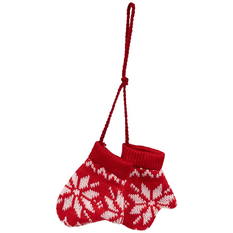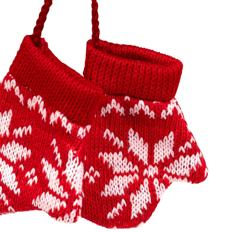 4" Red and White Nordic Knit Mittens Christmas Ornament