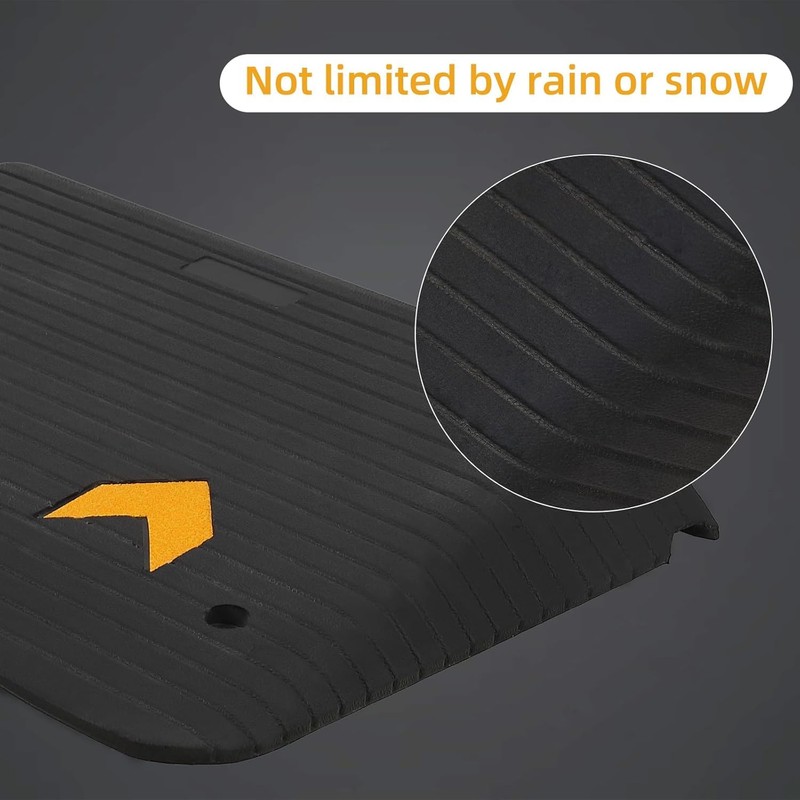- 【Portable and Stable】With a one-piece design, the threshold rubber ramp is easy to install and transport. It includes two pre-drilled holes and corresponding expansion screws, allowing for temporary, portable, or permanent installation. This makes it an ideal solution for access ramps at curbs, gardens, and garages;