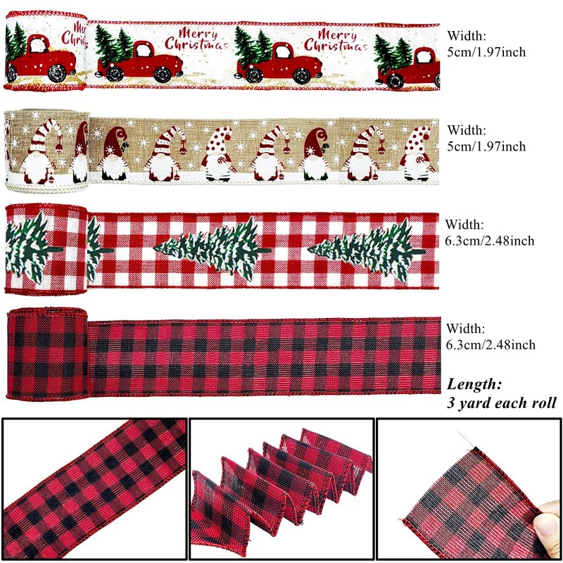 - Exquisite Design: These burlap ribbons are designed with christmas tree, car, snow and buffalo plaid patterns, very classic christmas style. They can easily creat a strong Christmas atmosphere for you.