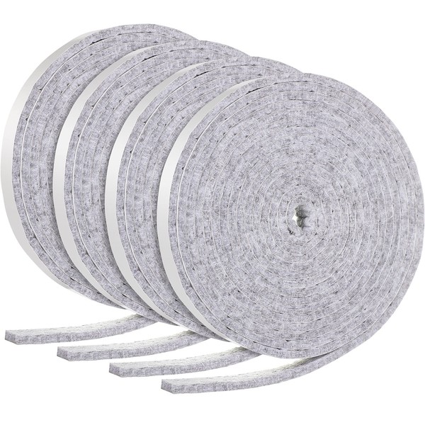 4 Rolls 120 Inch Felt Strip with Adhesive Backing Felt Tapes Furniture Felt Strip Rolls Self Stick Heavy Duty Polyester for Protecting Furniture and DIY Adhesive (Gray, 0.5 Inch)