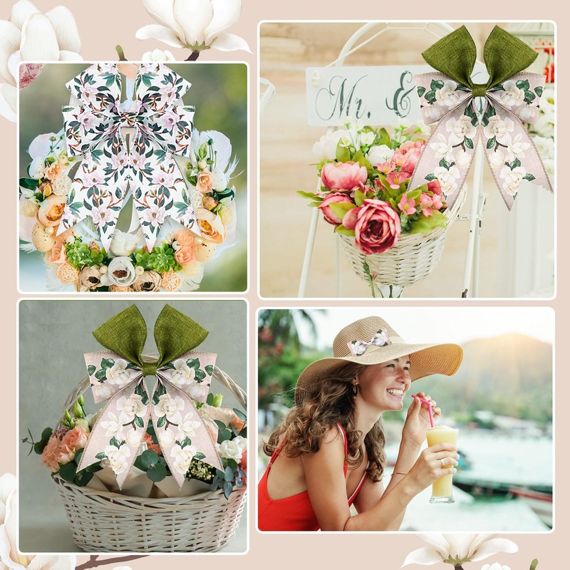 - Versatile Usage: these magnolia flower ribbons can be applied for decorating spring wreath, flowers, vases, cakes, home and etc; you can also use them for gift wrapping, making bows, party decorations,spring, summer, wedding season, baby shower, gift wrapping, adding a decorative touch to floral arrangements, wreaths, and home decor, as well as enhancing various crafting projects.