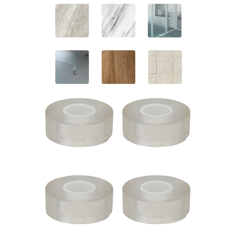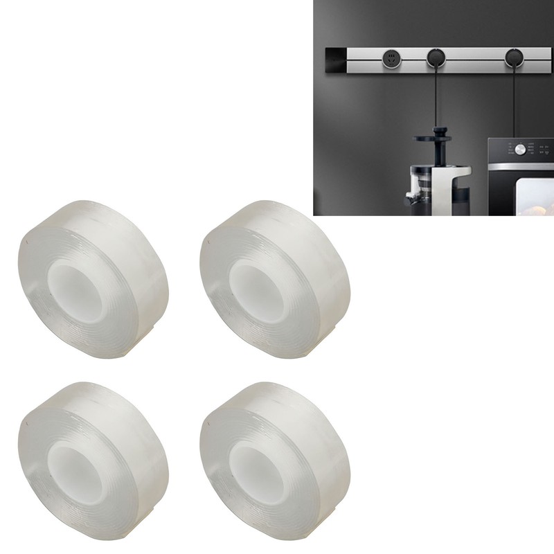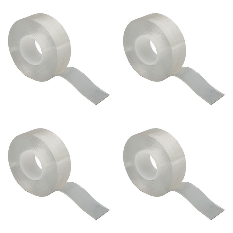 4 Rolls Double Sided Mounting Tape 9.8ft Long Each Cuttable Strong Ductility Reusable Transparent Two Sided Tape for Posters