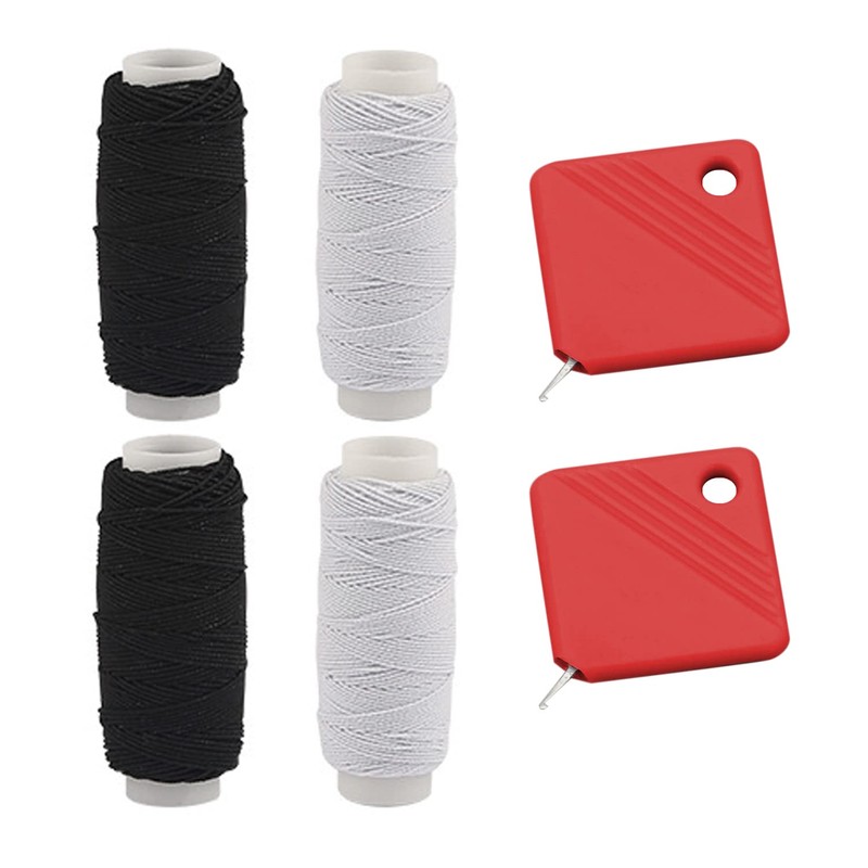 4 Rolls Elastic Sewing Thread, 2 Threading Tools, Elastic Cord Folded, Black and White Elastic Yarn, Sewing Accessories (0.5 mm x 27.4 m)