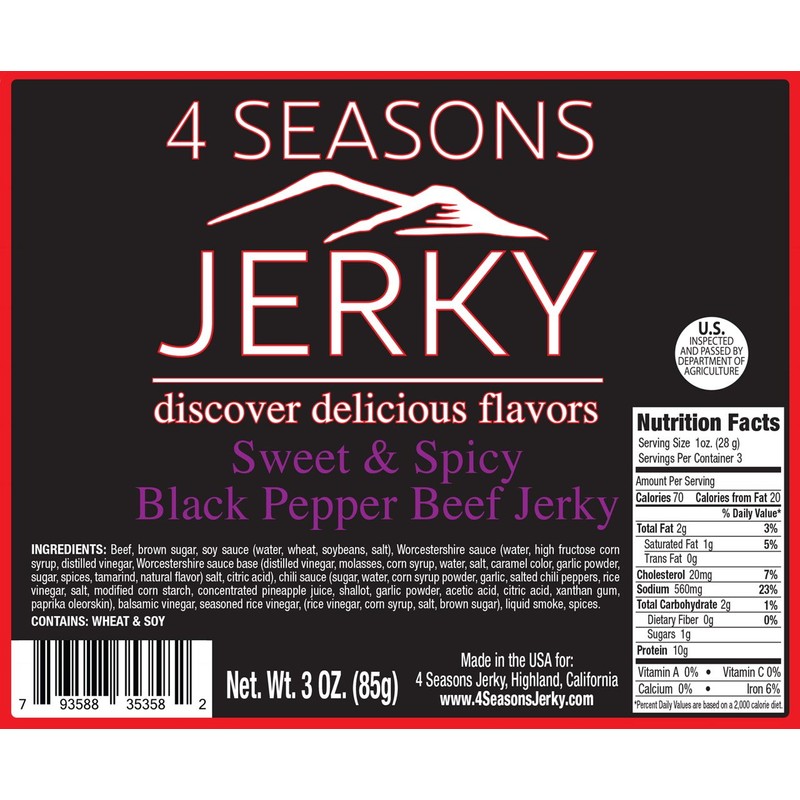 4 Seasons Jerky Sweet And Spicy Black Pepper Beef Jerky 2.75oz - 3 PACK