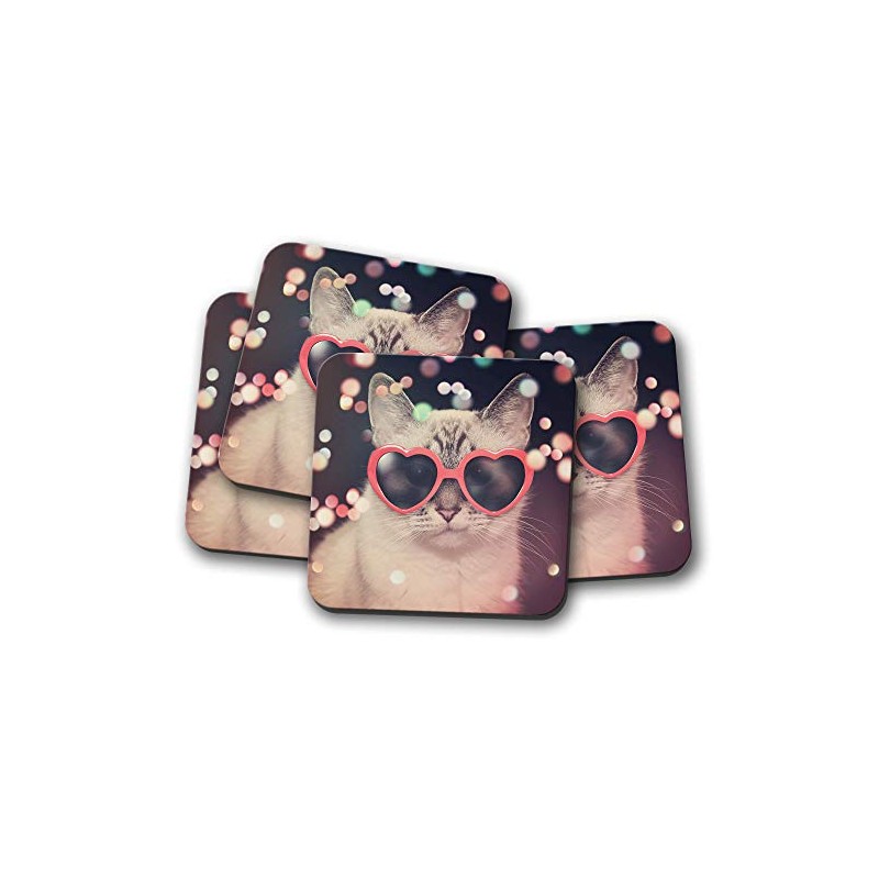 4 Set - Cat Drinks Coaster - Funny Cats Kitten Girls Daughter #8473