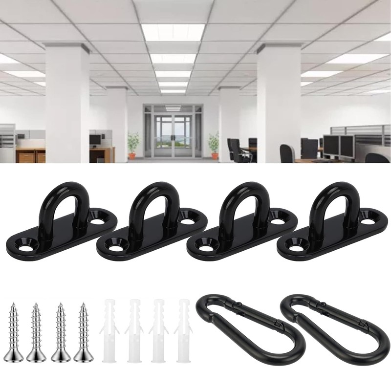 4 Set M6 Pad Eye Plate and Carabiner Clips,Black Metal Ceiling Hooks with Scr...