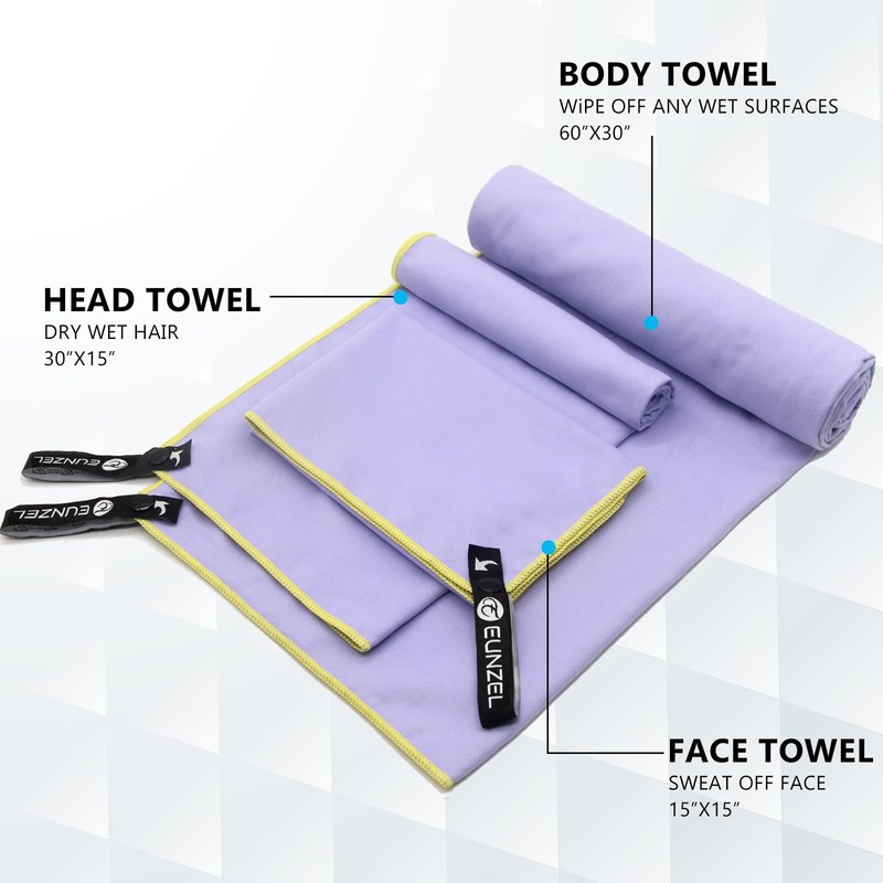 - ULTRA-SOFT FEEL: Each microfiber travel towel is crafted from premium material with smooth qualities akin to satin, offering a soft, smooth, and comfortable feel on your skin. It is super absorbent, odor-resistant, and remains fresh after drying.