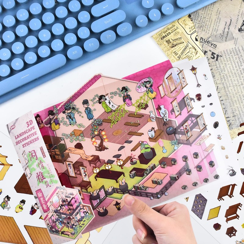 - Ancient 3D Sticker Scenes: You will get 4 sets different theme miniature 3D miniature scene stickers and a pair of tweezers. Size: 5.1*6.3 inch