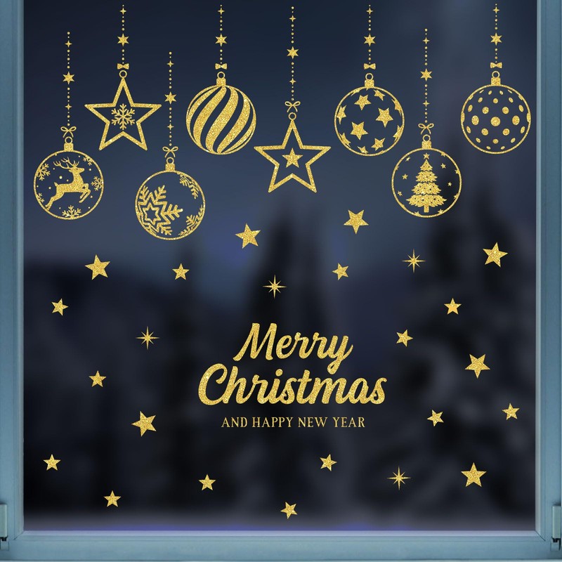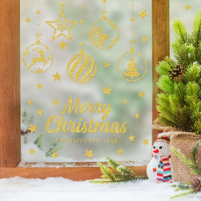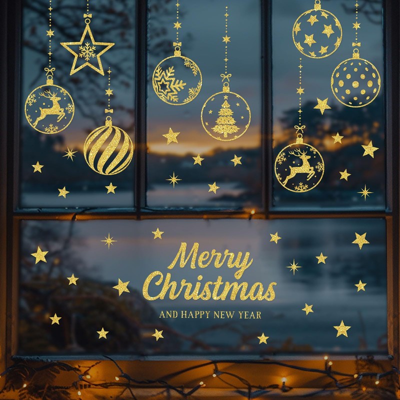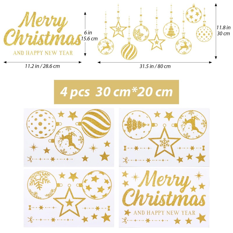 - ⭐【Package Included】: 4 Sheets gold glitter Christmas stained window stickers merry Christmas and happy new year Christmas window clings for Christmas window decorations.