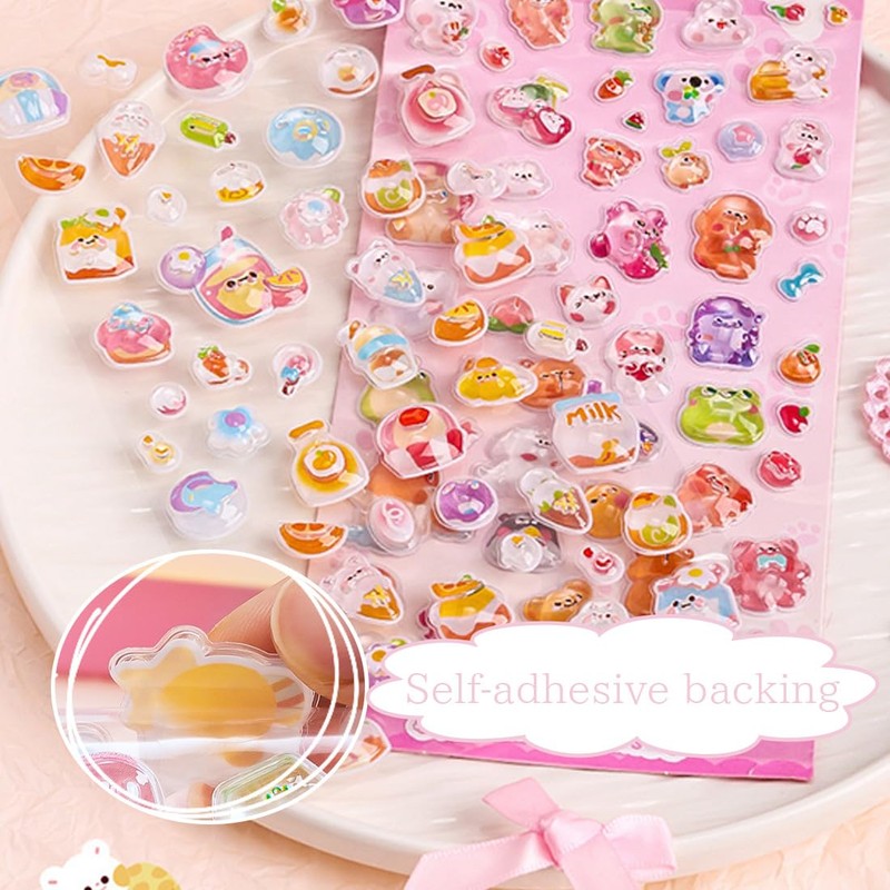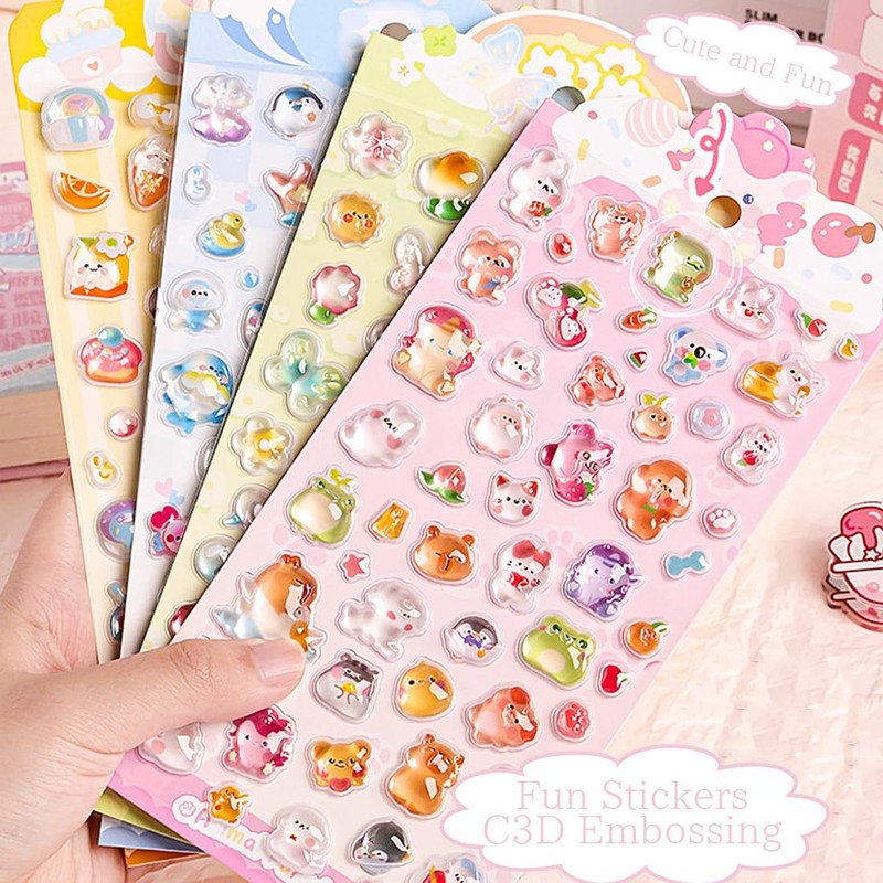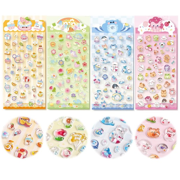 4 Sheets of 3D Stickers for Children & Toddlers, Cartoon 3D Relief Stickers, Puffy Stickers, Funny Decorative Stickers for Children, Waterproof and Transparent