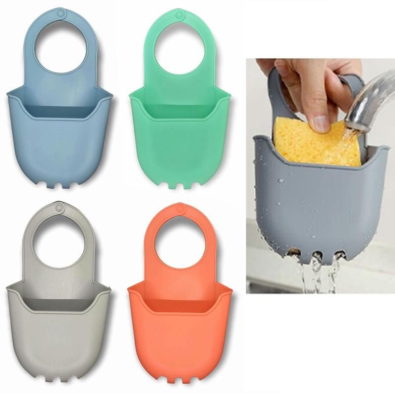 4 Sink Caddy Kitchen Silicone Soap Sponge Holder Hanging Basket Dish Bath Sho...