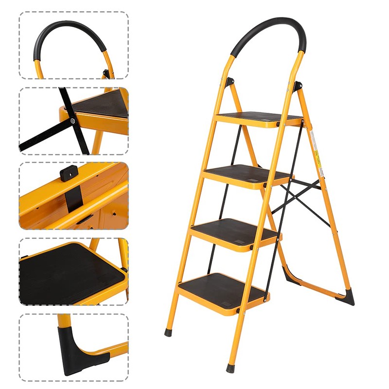 3. Safe : Locking mechanism design prevent the ladder from folding automatically. The folding design makes it space-saving and easy to store.