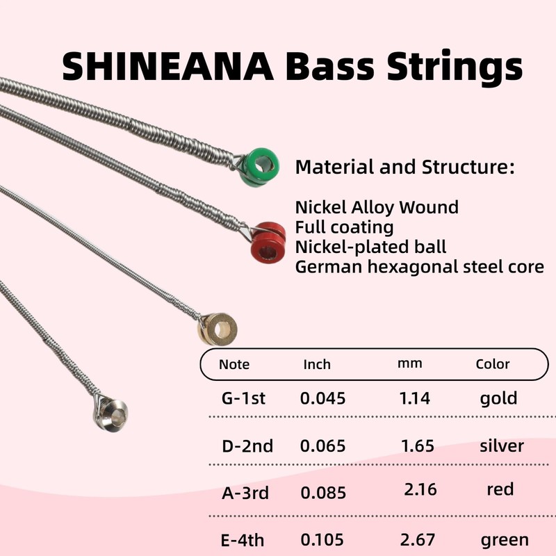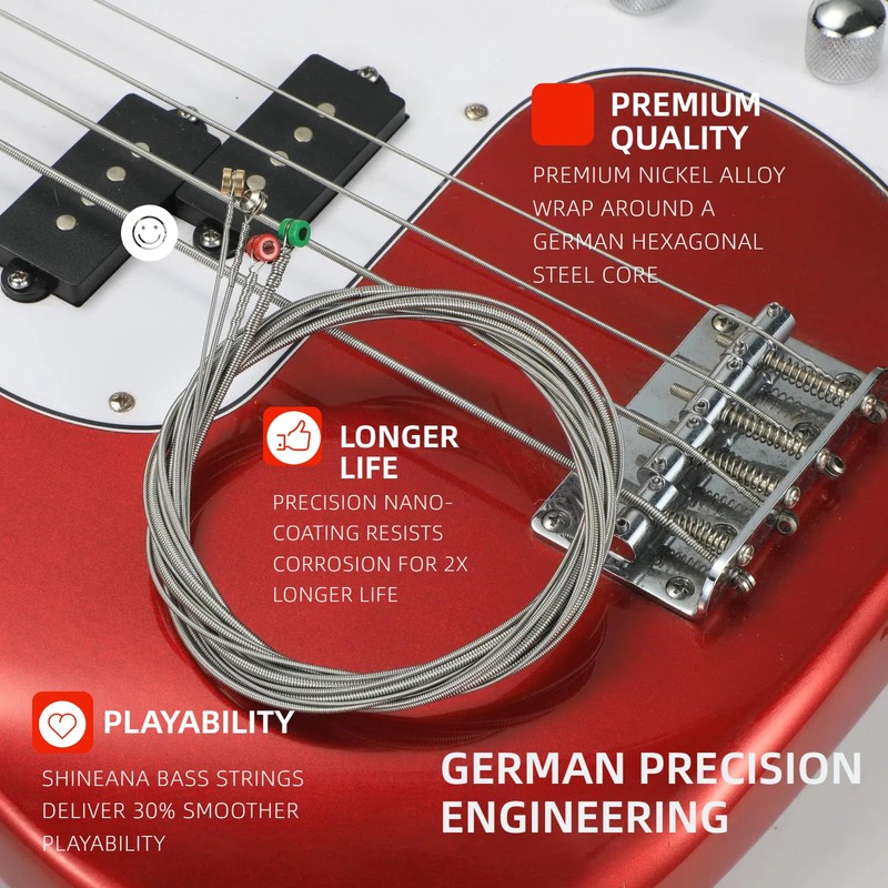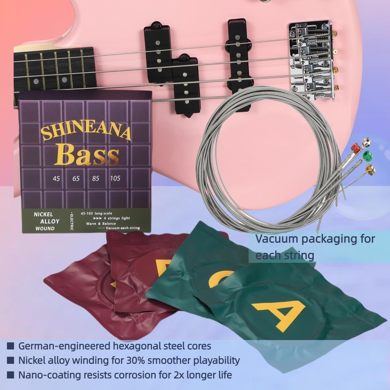- 【German Precision Engineering】Featuring a premium nickel alloy wrap around a German hexagonal steel core, SHINEANA bass strings deliver 30% smoother playability than standard stainless steel strings while producing richer mid-range and deeper bass tones.