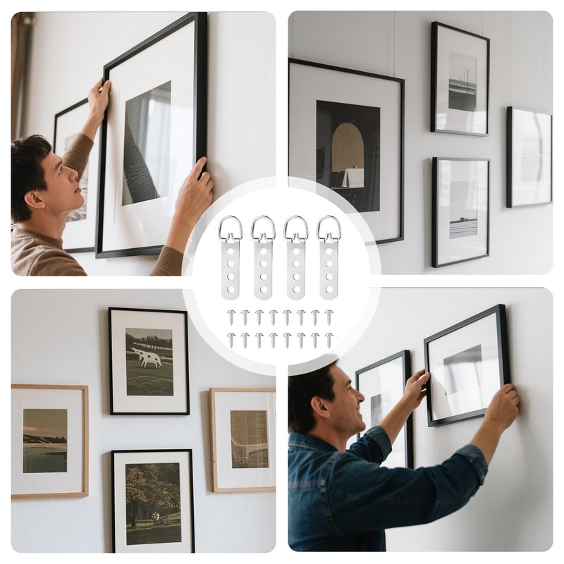 - 【Paketinhalt】Sie erhalten 4 bildaufhänger und 16 Edelstahlschrauben.Eine ausreichende Menge kann Ihren Bedarf zum Aufhängen von Gemälden decken.