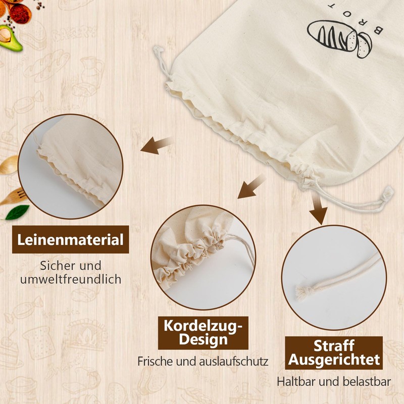 - 【Natürliches Leinen】4 stück leinen brotbeutel aufbewahrung frischhalten besteht aus natürlichem leinen, ist atmungsaktiv, geruchsneutral und lässt sich leicht in der Waschmaschine reinigen.