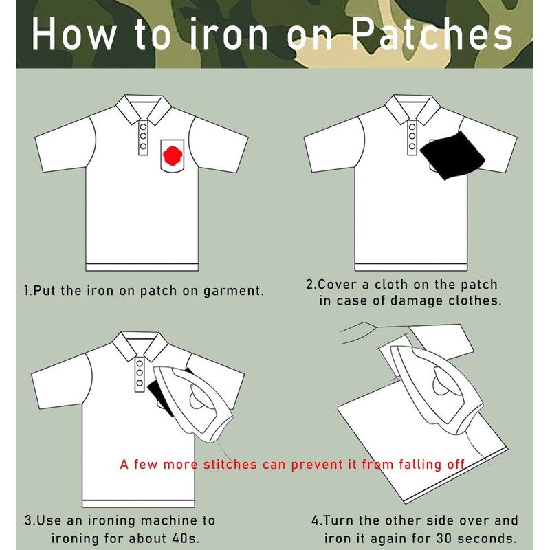 - 5.Multifunktions-Patches-Anhänglichkeit:Diese Patches können leicht an eine Vielzahl von Gegenständen angebracht werden,Ideal für DIY Kleidung Reparatur Zubehör Dekoration einschließlich Militäruniformen,Taktische Kleidung,Rucksäcke,Jeans,Jacken,Westen,Mütze,Taschen und so weiter,Fahrräder,Kleidung Schuhe,Hemden,usw.