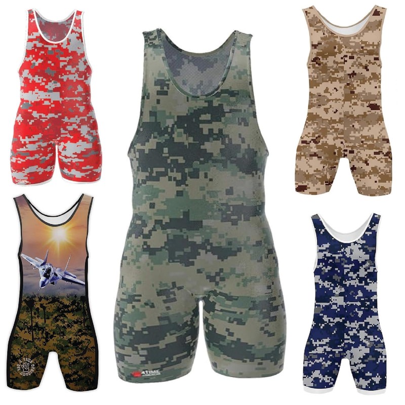 4-Time Camo Sublimada Wrestling Singlet, Camo, Grande