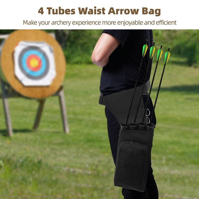 - Efficient 4 Tubes: Efficiently store your arrows with our 4-tube archery quiver waist bag; sturdy plastic tubes with smooth interior for quick retrieval; keeps your equipment organized and ready for action.