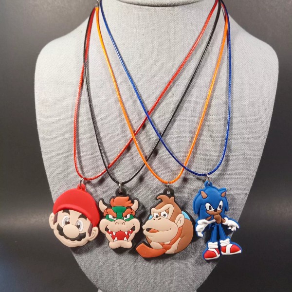 4 Video Game necklaces pendants charms / Mario Bowser Sonic gamer gift