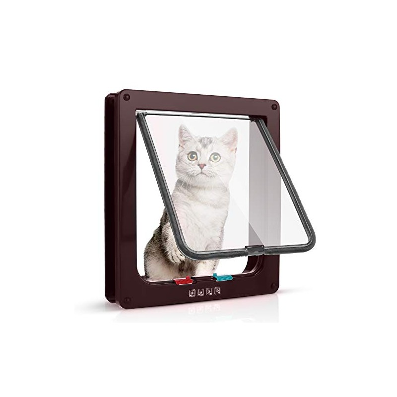 - 4-way switch mode cat flap, easy to install, excellent quality - weatherproof cat door for indoor and outdoor doors, ideal for cats and small dogs, brown, 19 x 20 x 5.5 cm