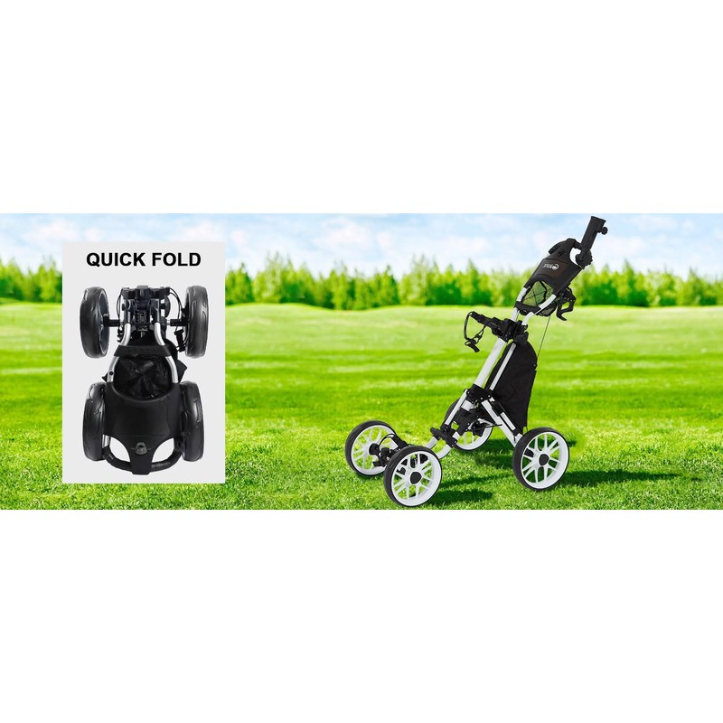 4-Wheel Golf Push Cart, 1 Click-Folding Golf Trolley, Compact Pull Caddy Cart, Durable and Mobile, Lightweight, Golf Bag Cart, Fits Golf Stand Bag and Golf Cart Bags, Includes Ice Bag