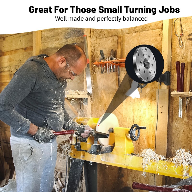 • Designed to be compatible with lathes equipped with a 1-1/4”x8TPI spindle thread , making it perfect for small bowl turning and other projects.