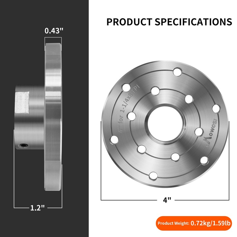 • 4" diameter wood lathe faceplate,1-1/4”x8TPI spindle thread ,0.43" thick steel faceplate.