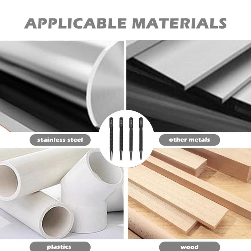 - IMPROVED ACCURACY - The center punches in this kit are specifically designed to enhance drilling accuracy. By creating a small indentation on the wood surface, the punch helps to prevent the drill bit from slipping or wandering during drilling, resulting in more accurate holes
