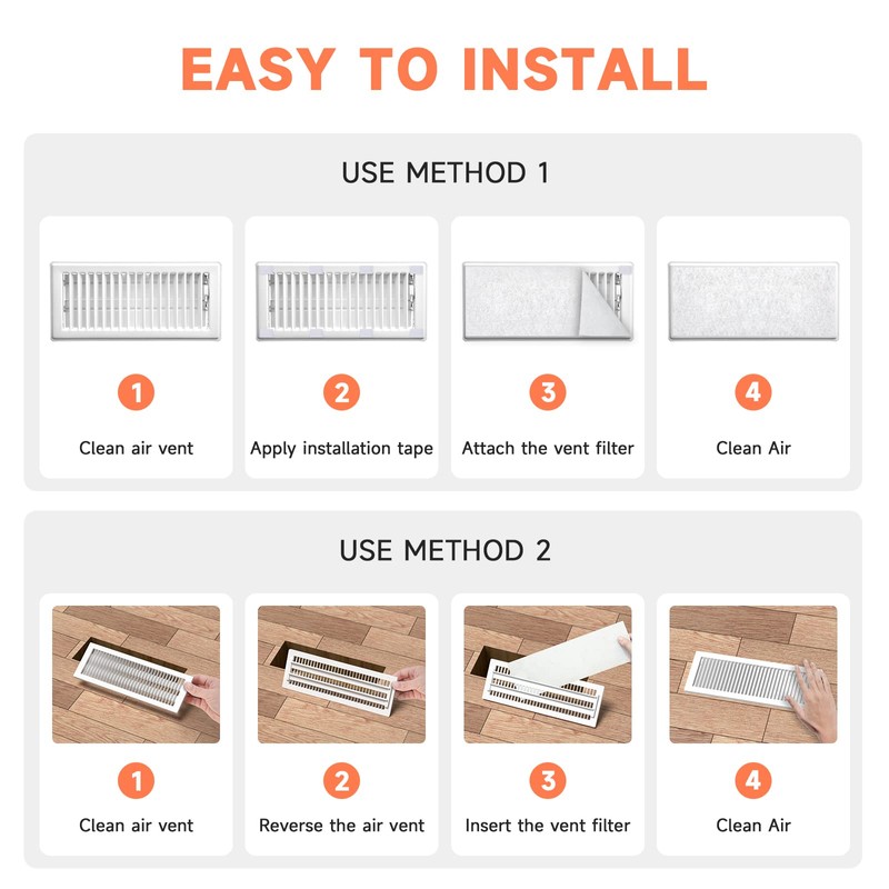 - 【AIR VENT FILTERS FOR AC UNITS AND HEATERS】 Insert these air vent filters into the floor air vent registers to purify the air coming from your AC units and heaters. Designed to filter the air you breathe; these air vent filters also prevent dirt and other objects from falling into the air vents.