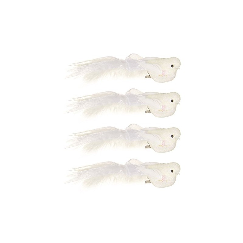 4 x 12cm White Glitter & Feather Christmas Bird Decorations with Clip by Premier