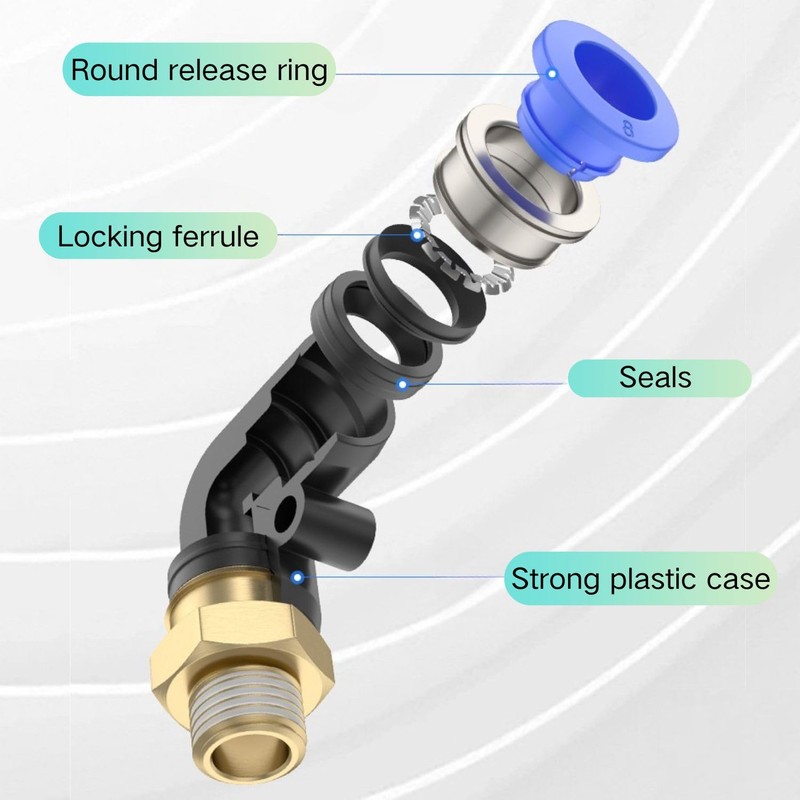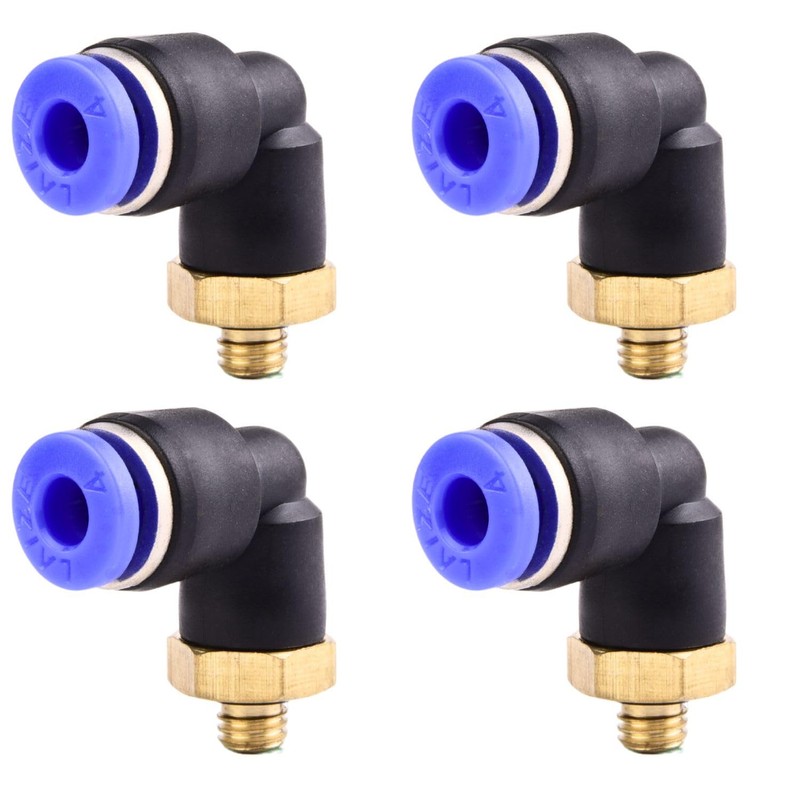 4 x 4 mm M5 PT Pneumatic 90° Angle Plug Fittings with Male Thread Pneumatic Quick Couplings for Plug-In Hoses Push-in Compressed Air Connection