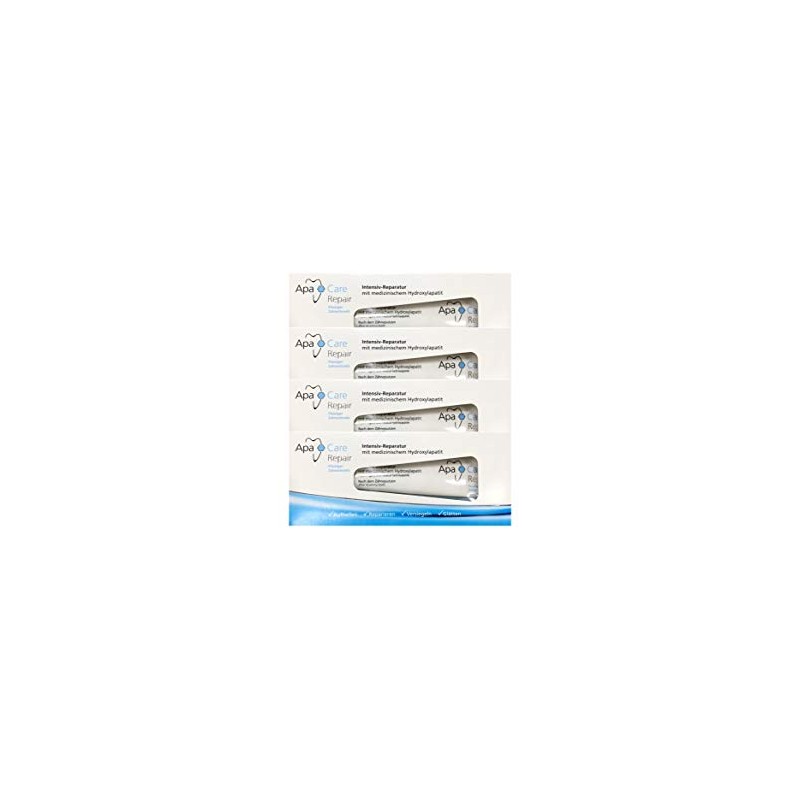 4 x ApaCare & Repair Tooth Repair Gel with Liquid Tooth Enamel, Apa Care and Repair Tooth Enamelling Gel, Toothpaste for Intensive Care and Remineralisation ApaCare & Repair Tooth Repair Gel Contains Liquid Tooth Enamelling (NanoHydroxylapatite). The medical hydroxylapatite as a highly active material is stored in the tooth surface during brushing and thus fills nanosmall cracks. Highly efficient dental care product that repairs, restores and seals the enamel surface, reduces sensibilities. Apatur Care & Repair Toothbrush 30 ml: contains 7 % nano-free, highly active hydroxylapatite, which repairs attacked and carious enamel and prevents demination especially suitable for high tooth prone sensitivity, sensitive teeth and after acidic food the teeth are treated with a thin layer that protects all plaque and bac repairs the teeth during treatment Do not rinse out! The best effect is achieved by simultaneously brushing daily teeth with ApaCare remineralising toothpaste and mouth rinse with ApaCare liquid toothbalm.