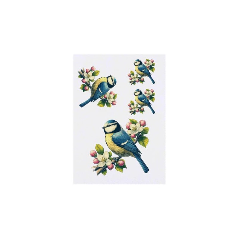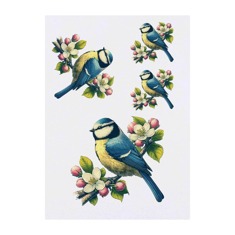 4 x 'Blue Tit On Apple Blossom' Temporary Tattoos - Water Resistant, Skin-Safe, Non-Toxic Transfers, Mixed Sizes (TO00077338)
