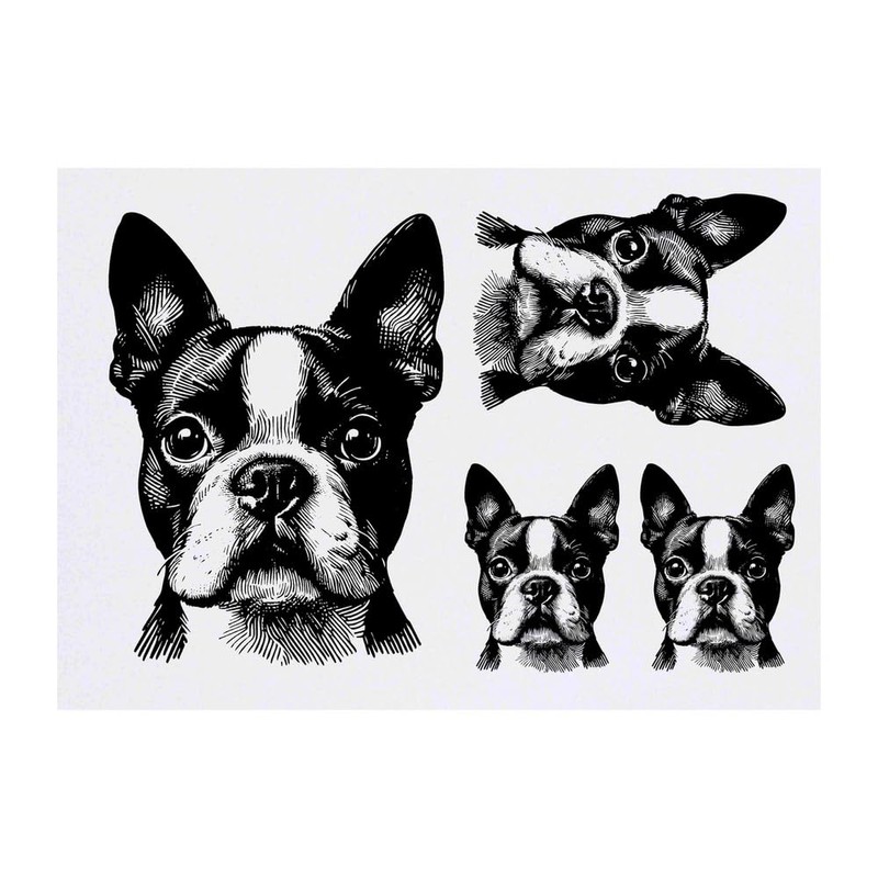4 x 'Boston Terrier' Temporary Tattoos - Water Resistant, Skin-Safe, Non-Toxic Transfers, Mixed Sizes (TO00077948)