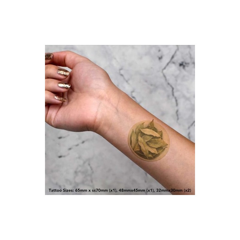 4 x 'Bowl of Bay Leaves' Temporary Tattoos - Water Resistant, Skin-Safe, Non-Toxic Transfers, Mixed Sizes (TO00084018)