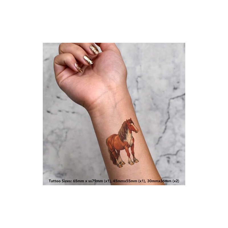 4 x ' Breton horse' Temporary Tattoos - Water Resistant, Skin-Safe, Non-Toxic Transfers, Mixed Sizes (TO00077136)