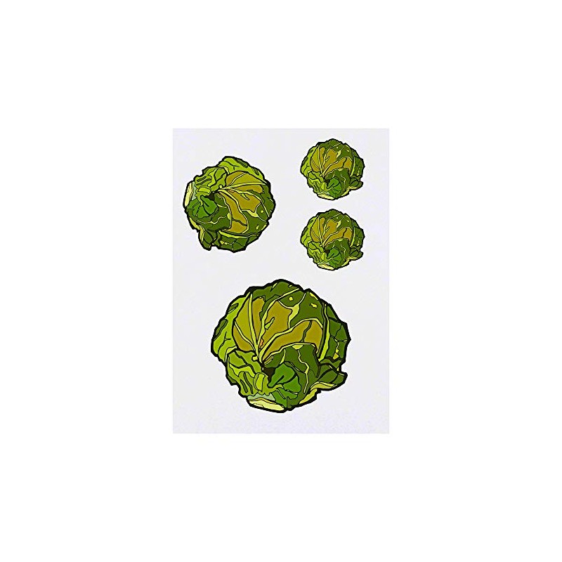 4 x 'Brussel Sprout' Temporary Tattoos - Water Resistant, Skin-Safe, Non-Toxic Transfers, Mixed Sizes (TO00015429)