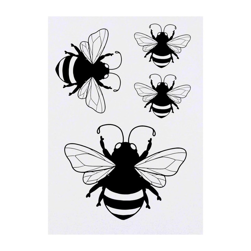 4 x 'Bumble Bee' Temporary Tattoos - Water Resistant, Skin-Safe, Non-Toxic Transfers, Mixed Sizes (TO00083456)