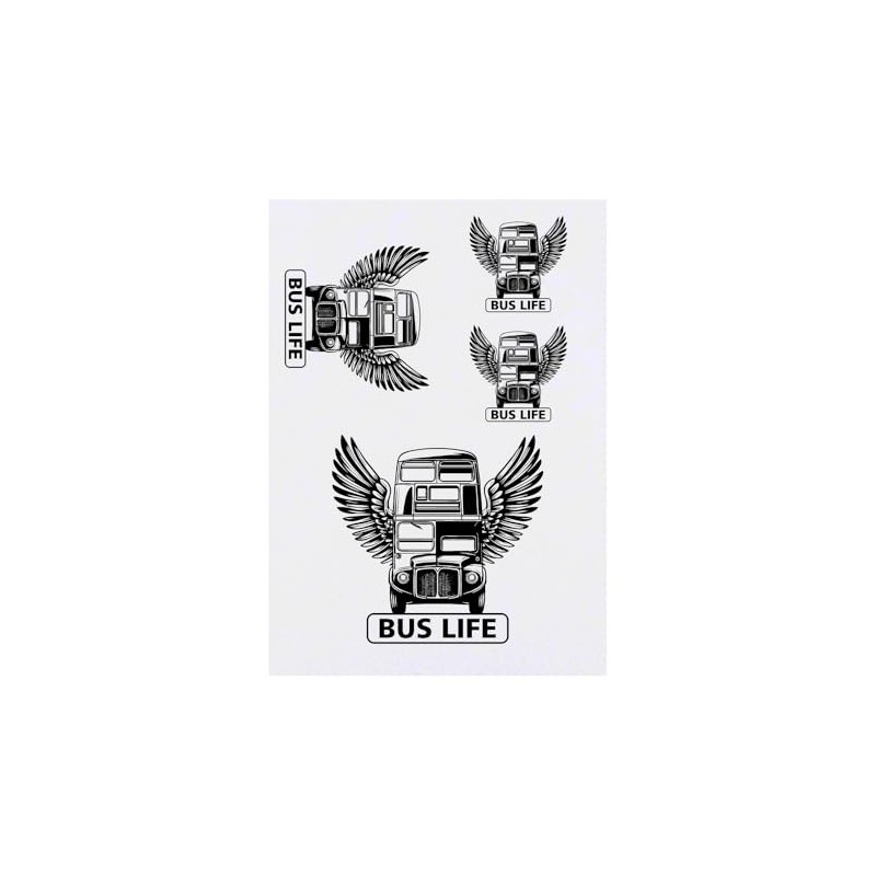 4 x 'Bus Life' Temporary Tattoos - Water Resistant, Skin-Safe, Non-Toxic Transfers, Mixed Sizes (TO00085150)