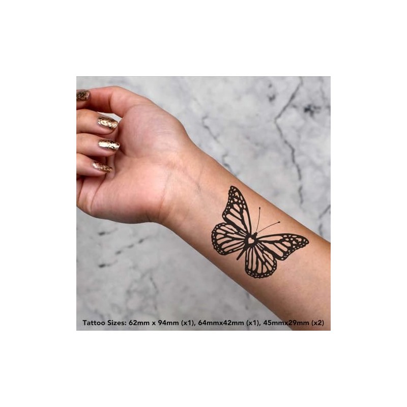 4 x 'Butterfly Heart Silhouette' Temporary Tattoos - Water Resistant, Skin-Safe, Non-Toxic Transfers, Mixed Sizes (TO00075792)
