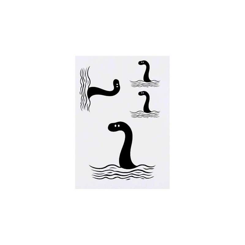 4 x 'Cartoon Loch Ness Monster' Temporary Tattoos - Water Resistant, Skin-Safe, Non-Toxic Transfers, Mixed Sizes (TO00080956)