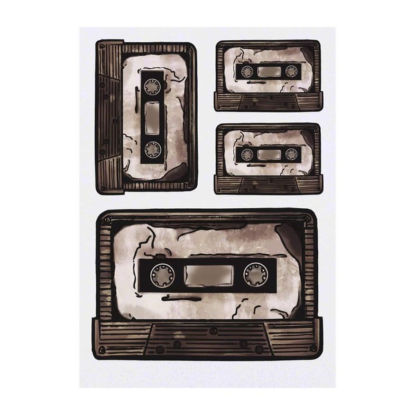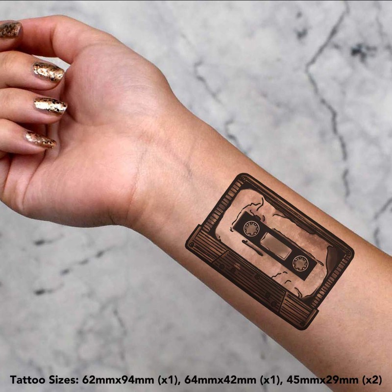 4 x 'Cassette Tape' Temporary Tattoos - Water Resistant, Skin-Safe, Non-Toxic Transfers, Mixed Sizes (TO00006737)