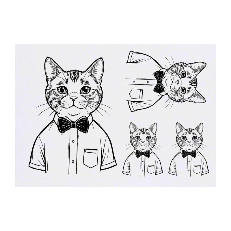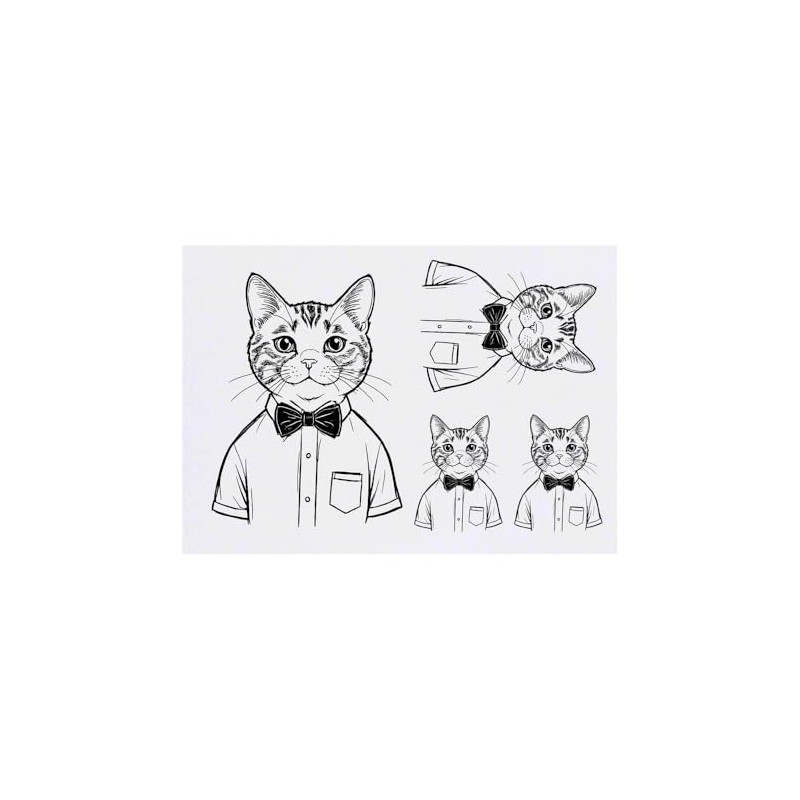 4 x 'Cat with Bow Tie' Temporary Tattoos - Water Resistant, Skin-Safe, Non-Toxic Transfers, Mixed Sizes (TO00074392)