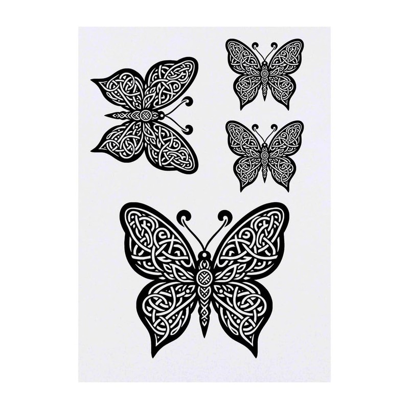 4 x 'Celtic Butterfly' Temporary Tattoos - Water Resistant, Skin-Safe, Non-Toxic Transfers, Mixed Sizes (TO00085168)