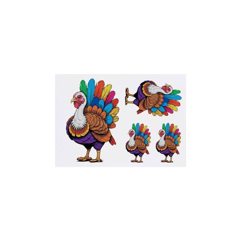 4 x 'Colourful Turkey With Feathers on Display' Temporary Tattoos - Water Resistant, Skin-Safe, Non-Toxic Transfers, Mixed Sizes (TO00069852)