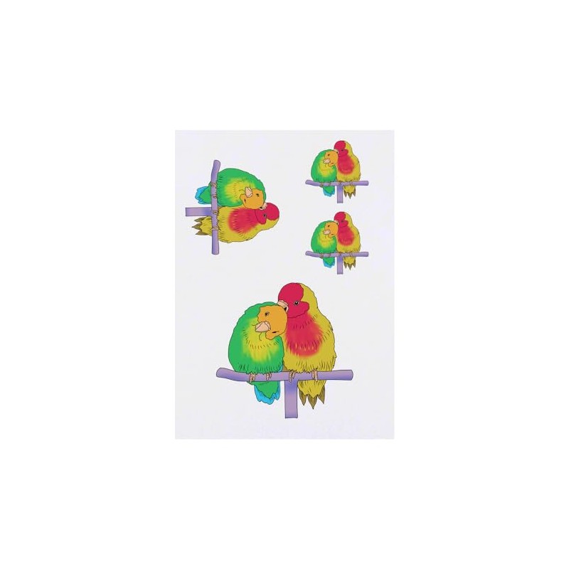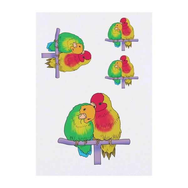 4 x 'Couple Parrots' Temporary Tattoos - Water Resistant, Skin-Safe, Non-Toxic Transfers, Mixed Sizes (TO00072602)