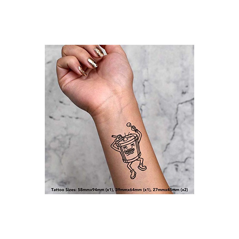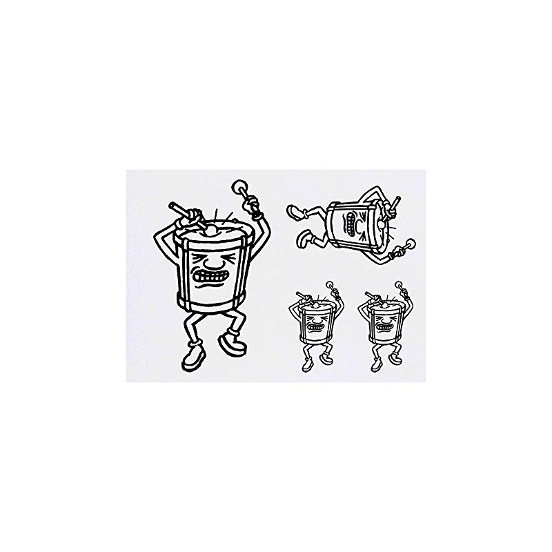 4 x 'Crazy Drum' Temporary Tattoos - Water Resistant, Skin-Safe, Non-Toxic Transfers, Mixed Sizes (TO00012911)