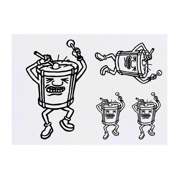 4 x 'Crazy Drum' Temporary Tattoos - Water Resistant, Skin-Safe, Non-Toxic Tr...